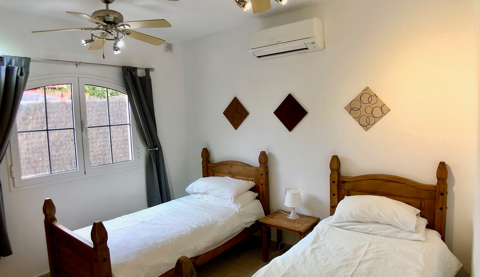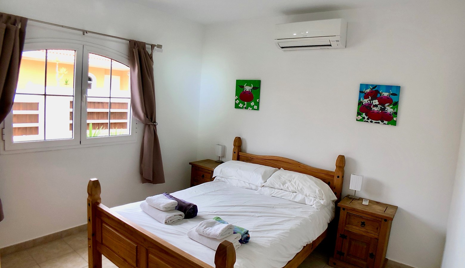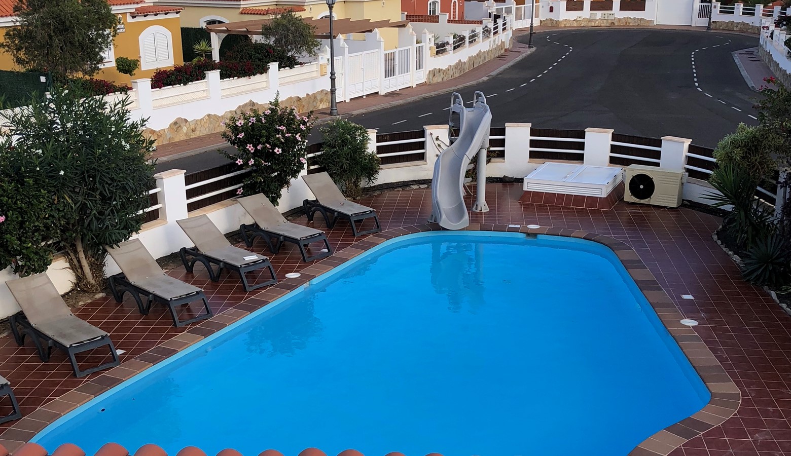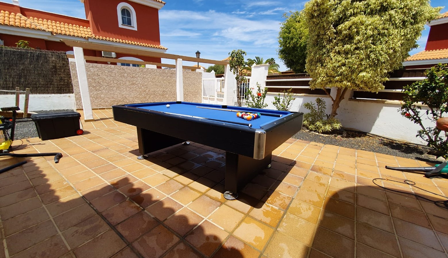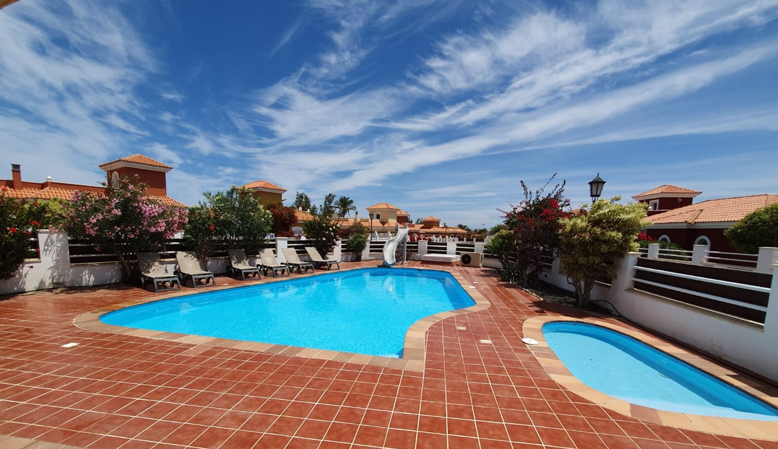 3 bedroom villa situated in the centre of the golf course, with largest private pool on golf course 12m x 8m and water flume slide and a pool table for added enjoyment. 15 mins walk to the beach, commercial centre which hosts numerous shops, bars and restaurants. 15 min drive from the airport and 5 min drive from Caleta de Fuste town centre. The facilities of the Golf Course and 5 star hotel are on your doorstep. 37" LCD TV. English Channels. Wii Games Console (with 2 games). Dishwasher. There is a Safe and Hair Dryer.